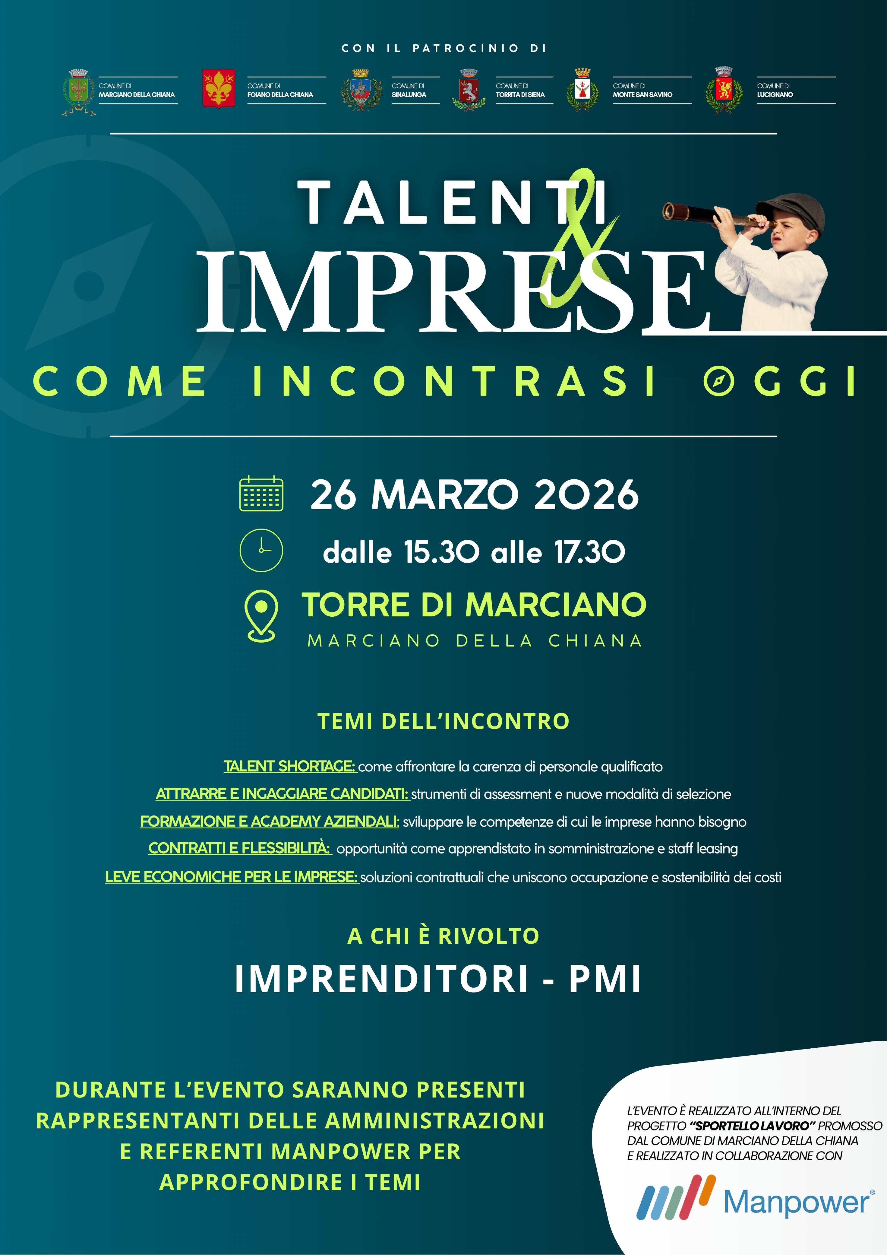 L'evento è realizzato all'interno del progetto "sportello lavoro" promosso dal Comune di Marciano della Chiana e realizzato in collaborazione con Manpower.